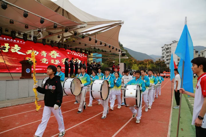 开幕式在激昂的《运动员进行曲》中拉开序幕。国旗队、校旗队、校徽队、彩旗队、鼓乐队、裁判队等首先入场,随后由学生代表方队和教师代表方队整齐有序地依次入场。他们英姿飒爽、气宇轩昂,步伐有力而坚定,或展示舞姿,或高喊口号,或表演节目,充分展现了全校师生朝气蓬勃、激情四射、奋发向上的良好精神风貌。