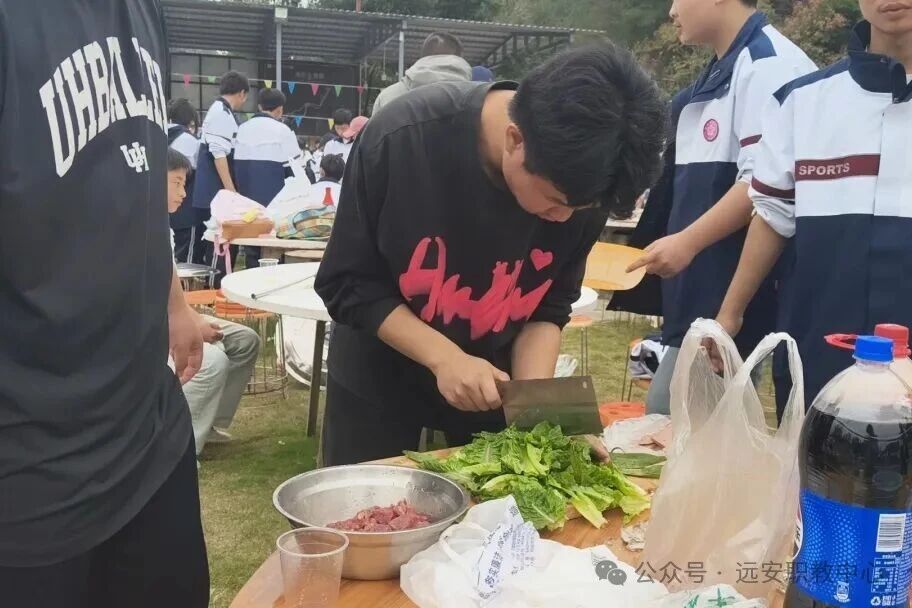 抵达三峡水乡后,各班迅速分工协作:洗锅、洗菜、切菜、炒菜的身影穿梭在营地,锅碗瓢盆的碰撞声里满是欢声笑语。