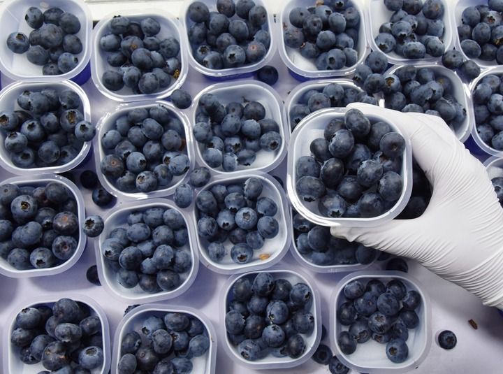 2025年2月28日,农户在云南红河哈尼族彝族自治州蒙自市草坝镇缤纷农业示范基地的冷藏库里分拣蓝莓。新华社发(薛莹莹摄)