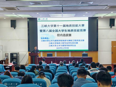 最后,土木与建筑学院党委副书记谢晓庆宣布“三峡大学第十一届地质技能大赛暨第八届全国大学生地质技能竞赛校内选拔赛”正式开赛。