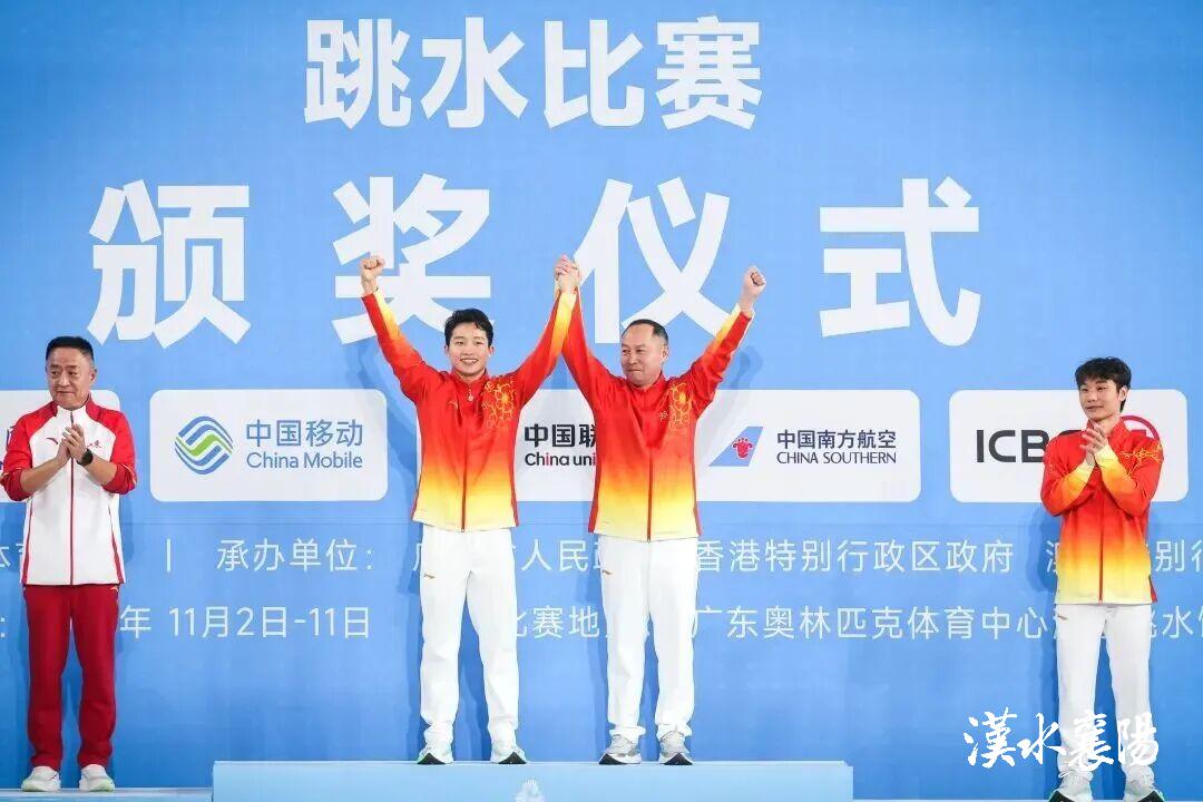 ▲襄阳运动员王宗源在第十五届全运会跳水项目男子1米跳板决赛中,为湖北跳水队夺得本届全运会首金