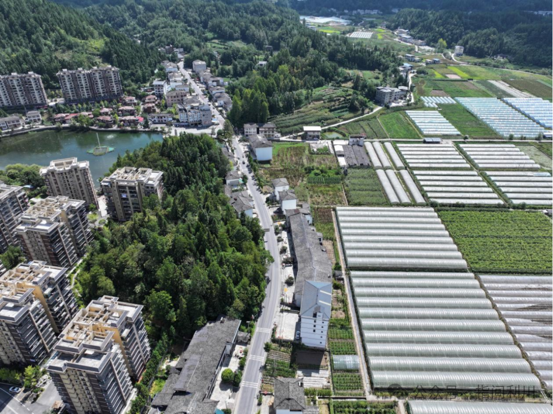 野猫水村公路两旁民宿群、大棚蔬菜基地