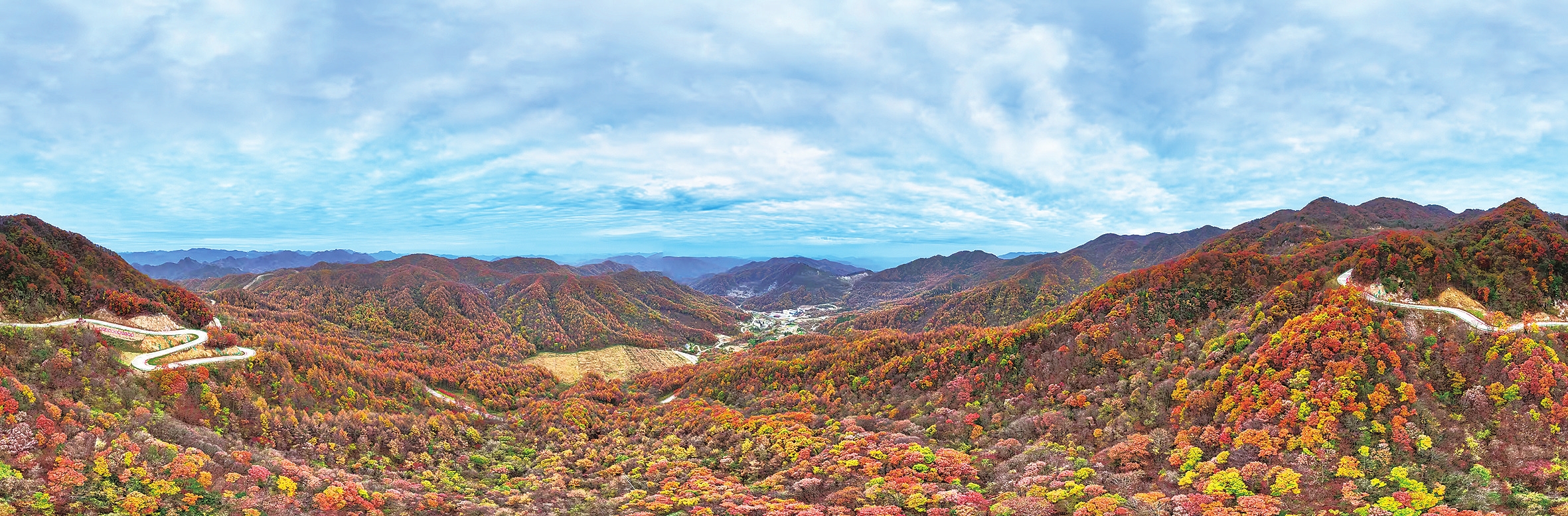 初冬时节,宜昌西北山区的樟村坪镇层林尽染、灿若云霞,仿佛跌入了大自然打翻的调色盘。(记者张亮红 摄)