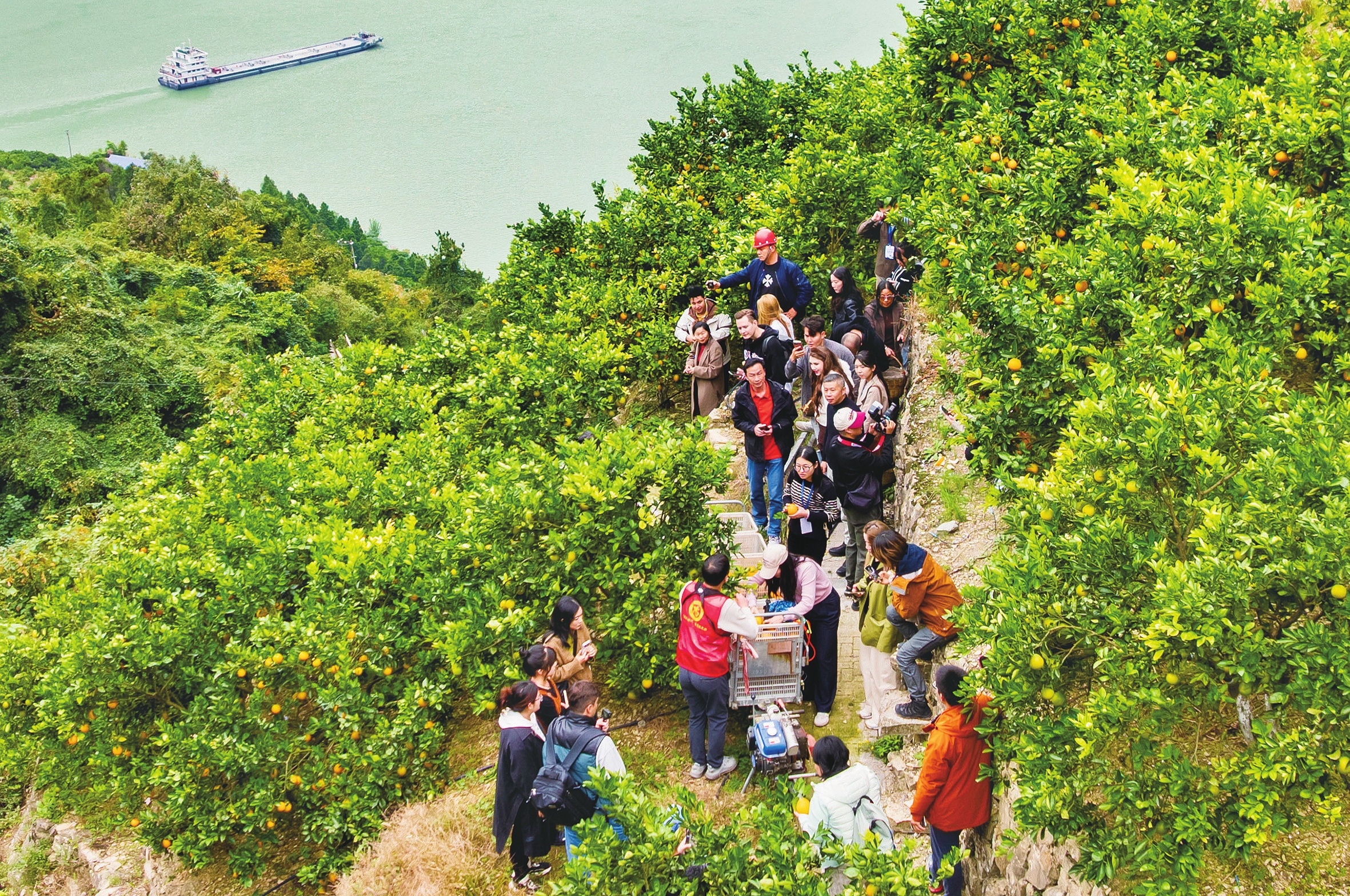 秭归县早熟脐橙(九月红)采收在即,来自埃及、俄罗斯、巴基斯坦、韩国、泰国等9个国家的博主与中央广播电视总台多语种主播共30余人,日前走进屈原镇,领略峡江风采,品尝脐橙风味。