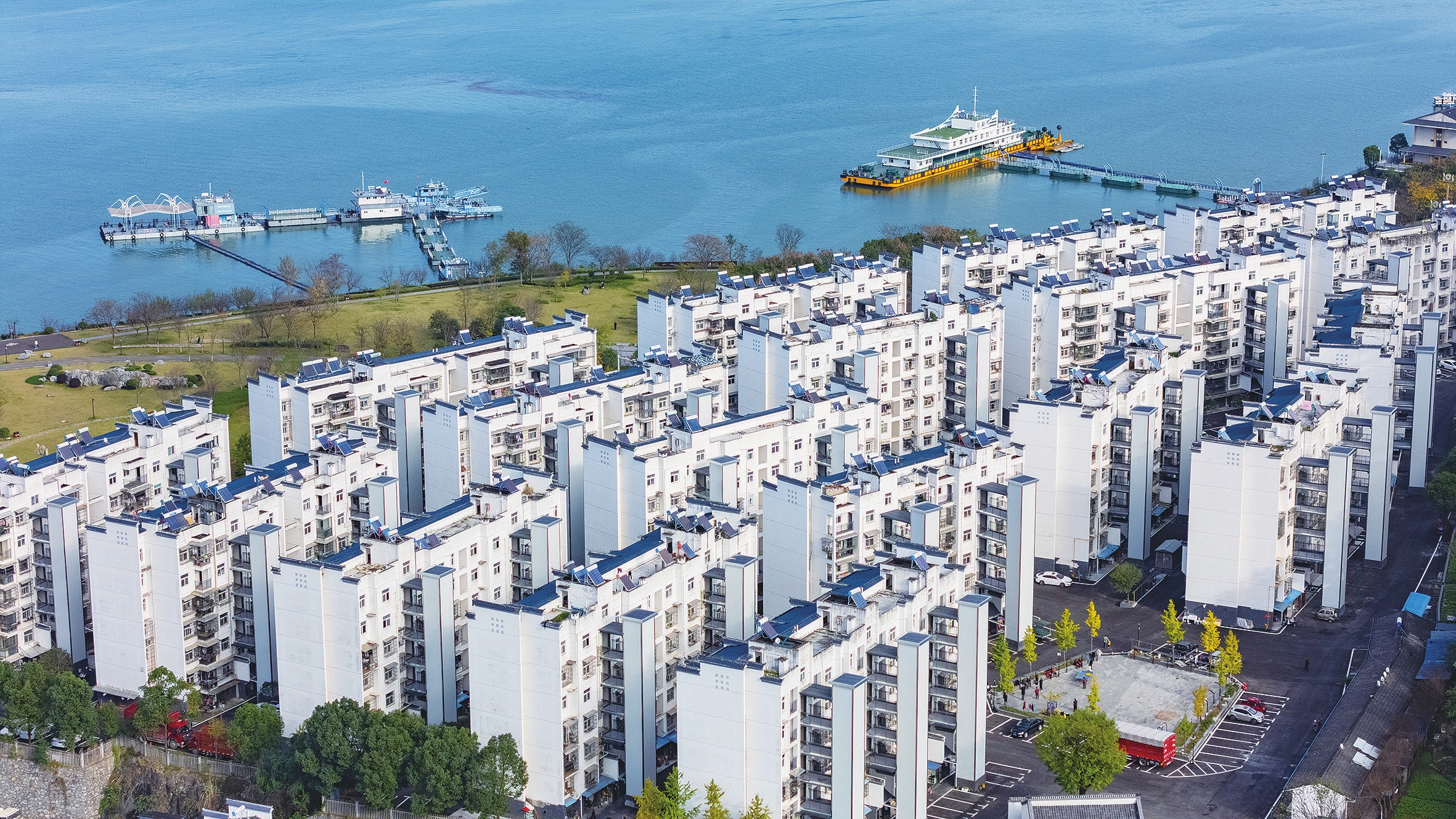 近日,秭归县茅坪镇银杏花园小区完成更新。该小区是三峡移民集中安置区,由于建设较早,基础设施较为薄弱。自秭归县启动银杏花园小区更新改造以来,加装电梯59部,新增停车位200余个,实施雨污分流、建筑美化亮化,优化居民活动场地及周边绿化,小区面貌焕然一新。通讯员彭强 摄)