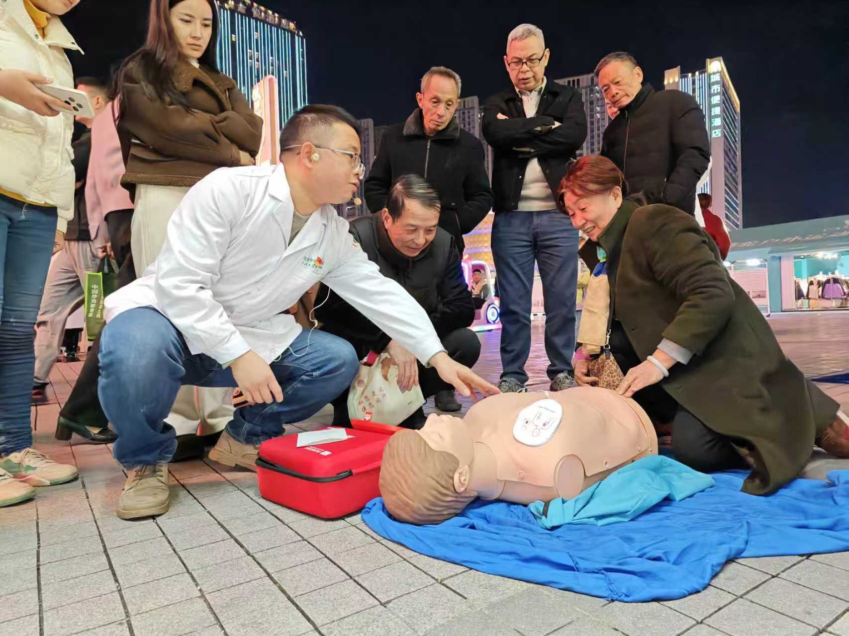 11月19日晚,宜昌市中心人民医院联合九三学社湖北省名医工作站宜昌站、伍家岗区城东社区医院在兴发广场举办了“1120 心梗救治日”健康宣教及大型义诊活动,市民纷纷乐学心梗防治知识。