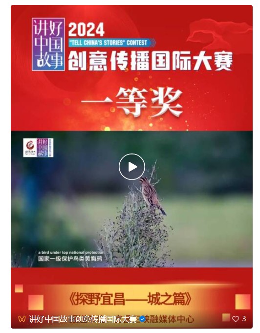 由宜昌三峡融媒体中心报送的《探野宜昌——城之篇》获得全国大赛一等奖。领奖代表、宜昌市委宣传部新闻发布和对外宣传科科长郝灵灵表示:“能够获得大赛一等奖,让我们倍感荣幸,这是团队协作的结晶,也是对宜昌国际传播工作的肯定。未来,我们将继续围绕中心、服务大局,优化内容生产,构建更具宜昌特色的国际传播体系,着力讲好中国故事宜昌篇章。”