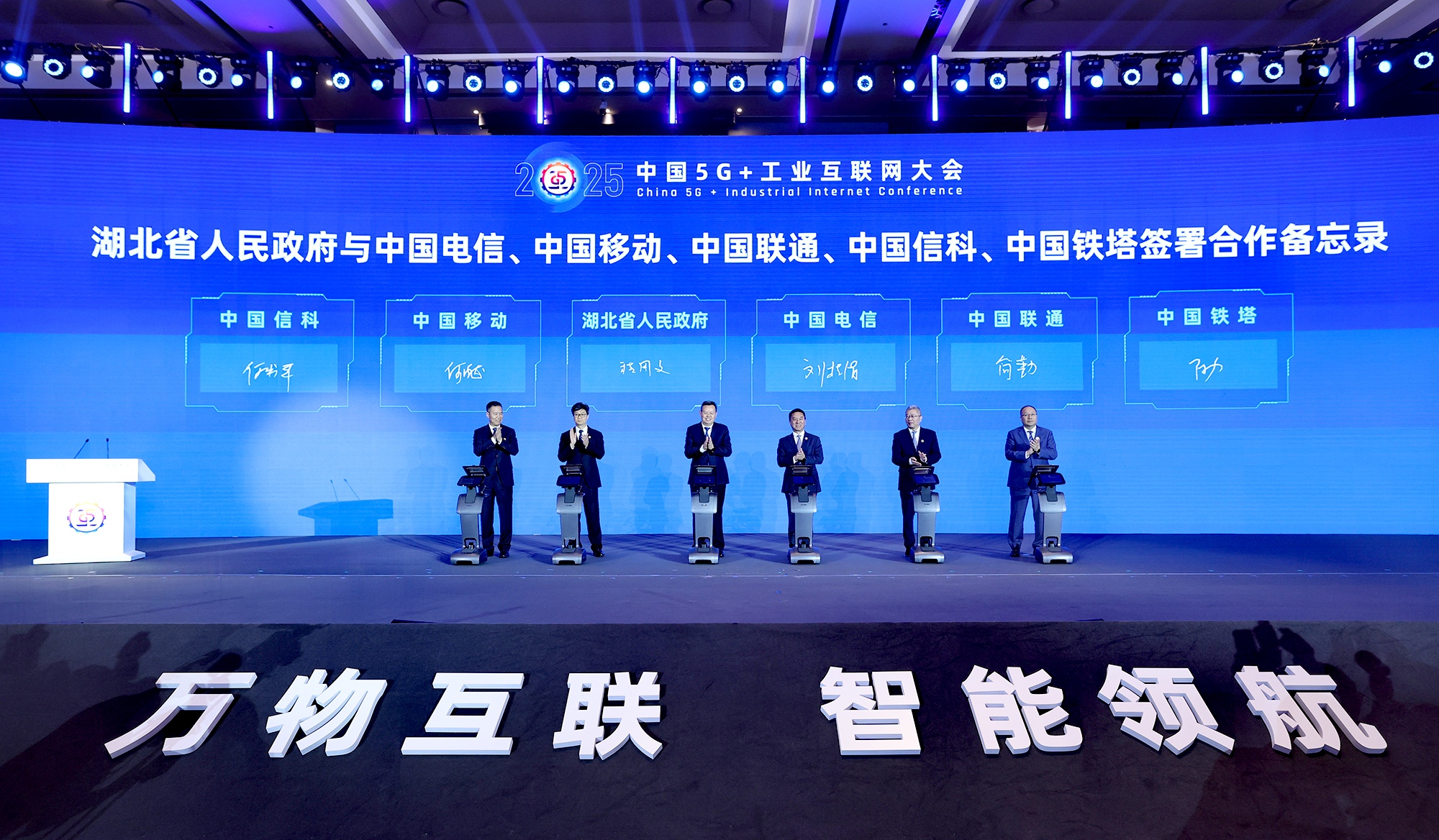 王忠林说,在习近平总书记亲切关怀下,中国5G+工业互联网大会已成为展示创新成果的重要窗口、推动技术融合应用的关键平台、汇聚高端思想智慧的行业盛会。本届大会以“万物互联、智能领航”为主题,凝聚数智共识,共襄发展盛举,必将为发展新质生产力、推进中国式现代化注入强劲动力。湖北因产而兴、乘数而强,数字驱动、智能引领已成为荆楚大地高质量发展的鲜明标识。我们将认真贯彻党的二十届四中全会和习近平总书记考察湖北重要讲话精神,坚持智能化、绿色化、融合化方向,加快构建体现湖北优势的现代化产业体系。坚持以创新为基,深入实施创新驱动引领工程,加快5G-A规模部署和6G研发验证,努力建设全国工业互联网创新发展示范区,全力打造万物互联新标杆。坚持以应用为本,深入开展“人工智能+”行动,加快推动汽车、钢铁、化工等传统产业“智改数转”,集成电路、低空经济等新兴产业“聚变跃升”,量子科技、脑机接口等未来产业“前瞻布局”,全力建设智能经济新高地。坚持以开放为要,深化部省合作、区域合作、政企合作,加快打造市场化、法治化、国际化一流营商环境,让广大企业在湖北投资放心、发展安心,全力拓展交流合作新空间。