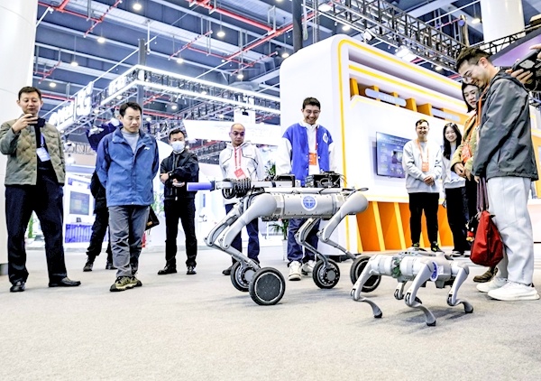观众围观机器狗 摄影:楚天都市报极目新闻记者李辉