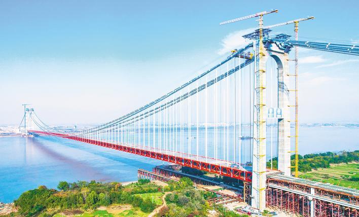 冬日暖阳下,四条主缆的燕矶长江大桥巍峨矗立,离大桥5公里远的鄂州花湖国际机场不断有航班起降。“为保障大桥顺利合龙,在省交通运输厅工程事务中心的帮助下,我们对合龙口的标高、里程和轴线不间断地进行监控与测量,精确计算温度、风力等环境因素对钢梁形变的影响,最终,钢桁梁以毫米级的精度平稳嵌入预定位置。”中交二航局燕矶长江大桥项目总工程师罗航说。
