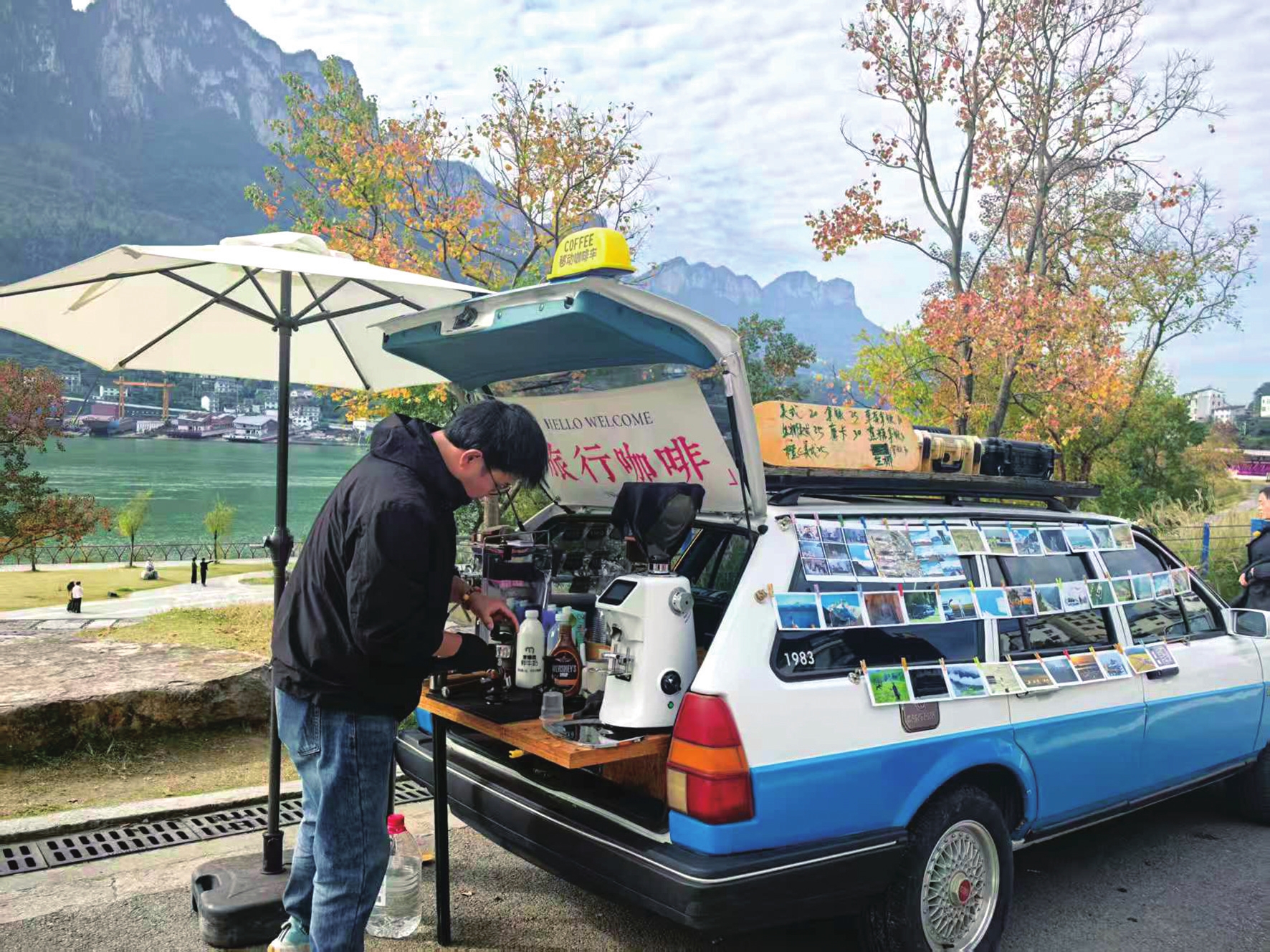 去年3月,来自随州的周云游玩三峡大坝时,自驾路过G348三峡公路,对夷陵山水一见倾心,他便决定落脚这里卖咖啡。“节假日高峰期,一天咖啡能卖两三千块钱。”周云说。