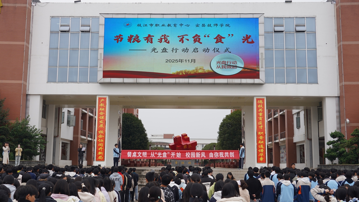 为弘扬勤俭节约传统美德,营造浪费可耻、节约为荣的校园风尚,11月10日,枝江职教中心隆重举行“节粮有我 不负‘食’光”光盘行动启动仪式,正式拉开为期一个月的主题教育序幕。