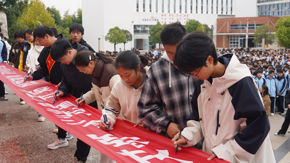 启动仪式上,一年级团总支书记赵梦洁作为教师代表宣读《光盘行动倡议书》,号召全体师生争做节约粮食的倡导者和实践者。25级汽修班李志骋同学代表全体学生宣读《光盘行动承诺书》,郑重承诺将从自身做起,珍惜每一餐、节约每一粒粮。随后,各班学生代表依次上台签名,用实际行动表达践行光盘行动的决心。