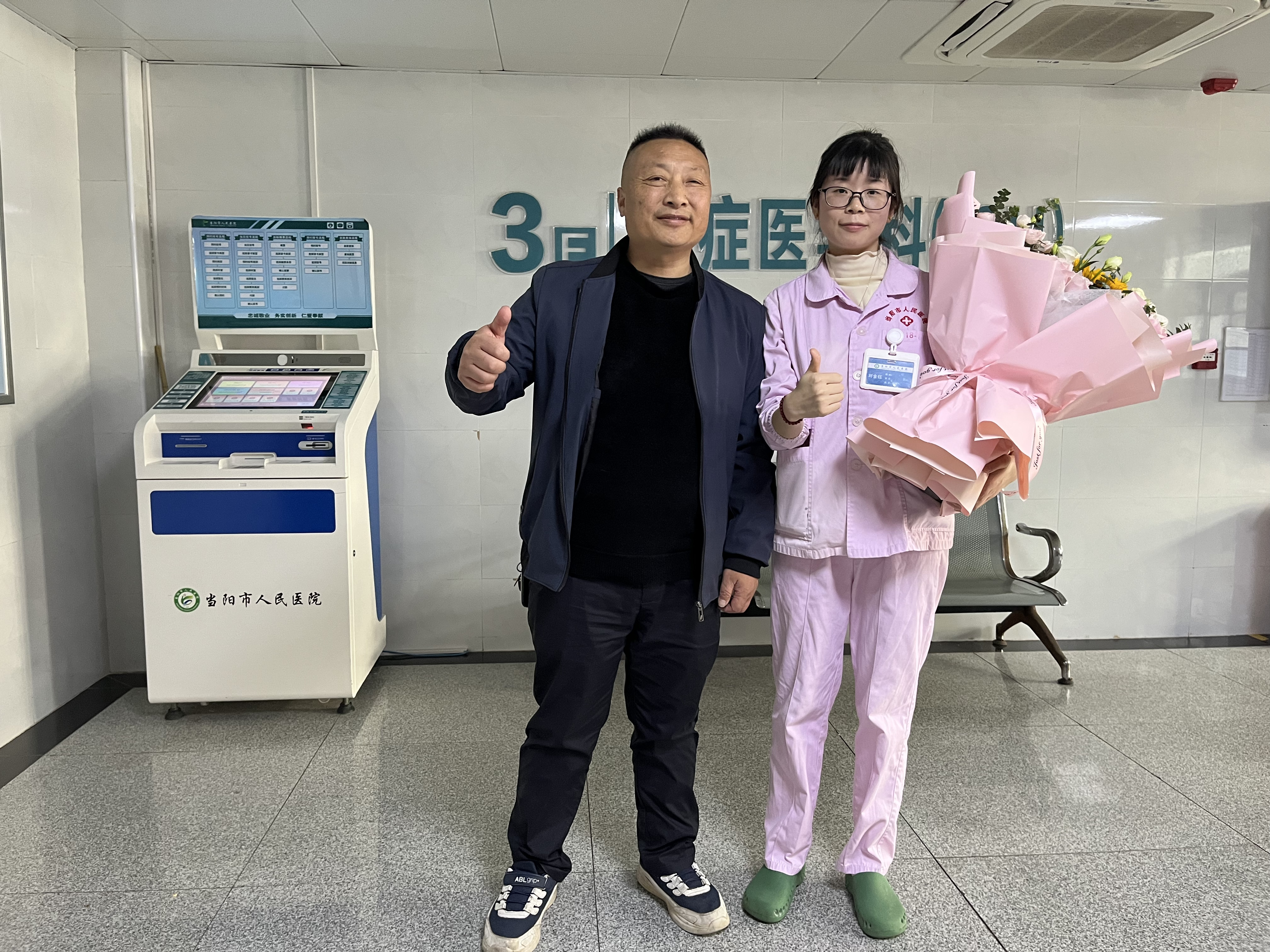 11月5日,当阳市人民医院重症医学科候诊区上演了温馨一幕,48岁的田先生手捧鲜花,在亲友的陪伴下,将一面锦旗郑重交到主治医生刘金钰手中。这个充满感激的场景,源于一年前那场惊心动魄的生死救援。