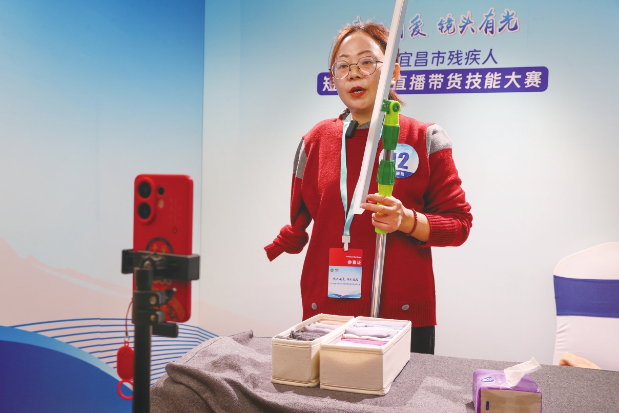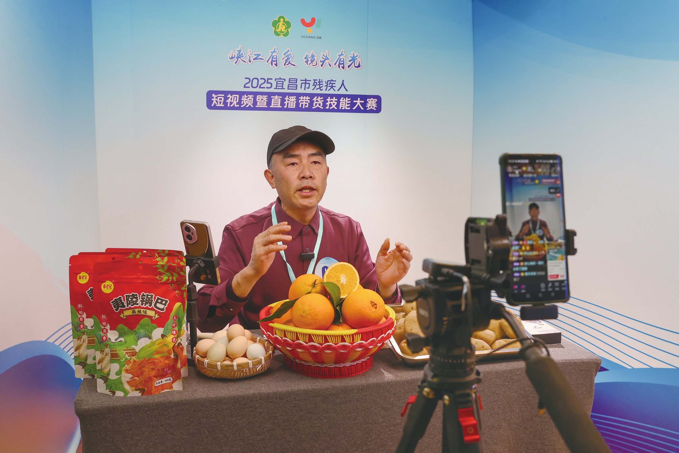 11月25日,2025宜昌市残疾人短视频暨直播带货技能大赛决赛成功举办。来自全市的30名选手齐聚一堂,通过镜头展现自强不息的风采与精湛的专业技能。此次活动为残疾人提升职业技能、融入新媒体行业提供了宝贵平台。(记者周卓然 摄)