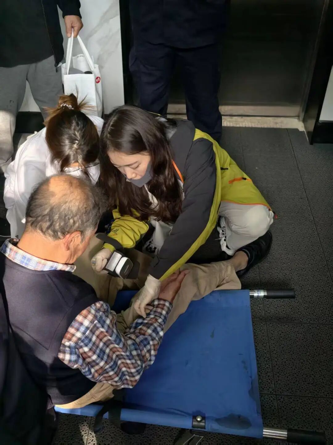 经询问得知,一名老人坐电梯时突然晕倒,意识模糊,景区医生虽和保安将其挪到担架上,但老人躁动不安,根本无法有效开展检查。郭丽娟与医生商议后,迅速将老人抬到电梯外的空旷处。