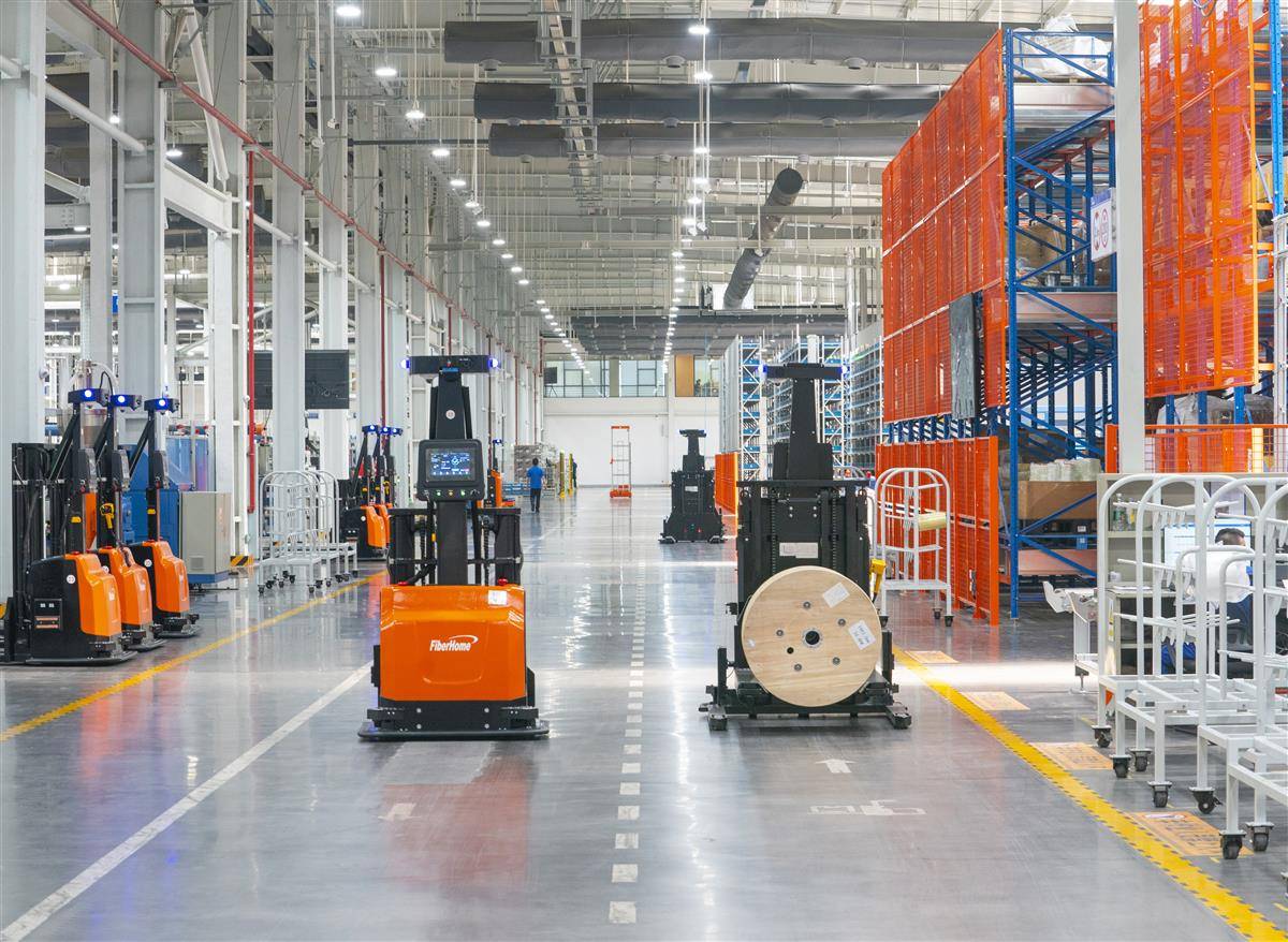 烽火通信智能工厂,5G和数字孪生技术构建的“透明车间”里,AI系统实时调度生产任务。(湖北日报全媒记者 魏铼 摄)