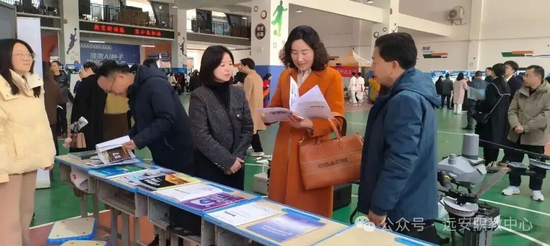 展示区前,人头攒动,气氛热烈。来自全市各院校、教育机构的专家、教师及技术爱好者纷纷驻足,对远安县职业教育中心展示的无人机技术与配套教材表现出浓厚兴趣,并就技术细节、教学应用与合作可能性与该校师生进行了深入、友好的交流与探讨。