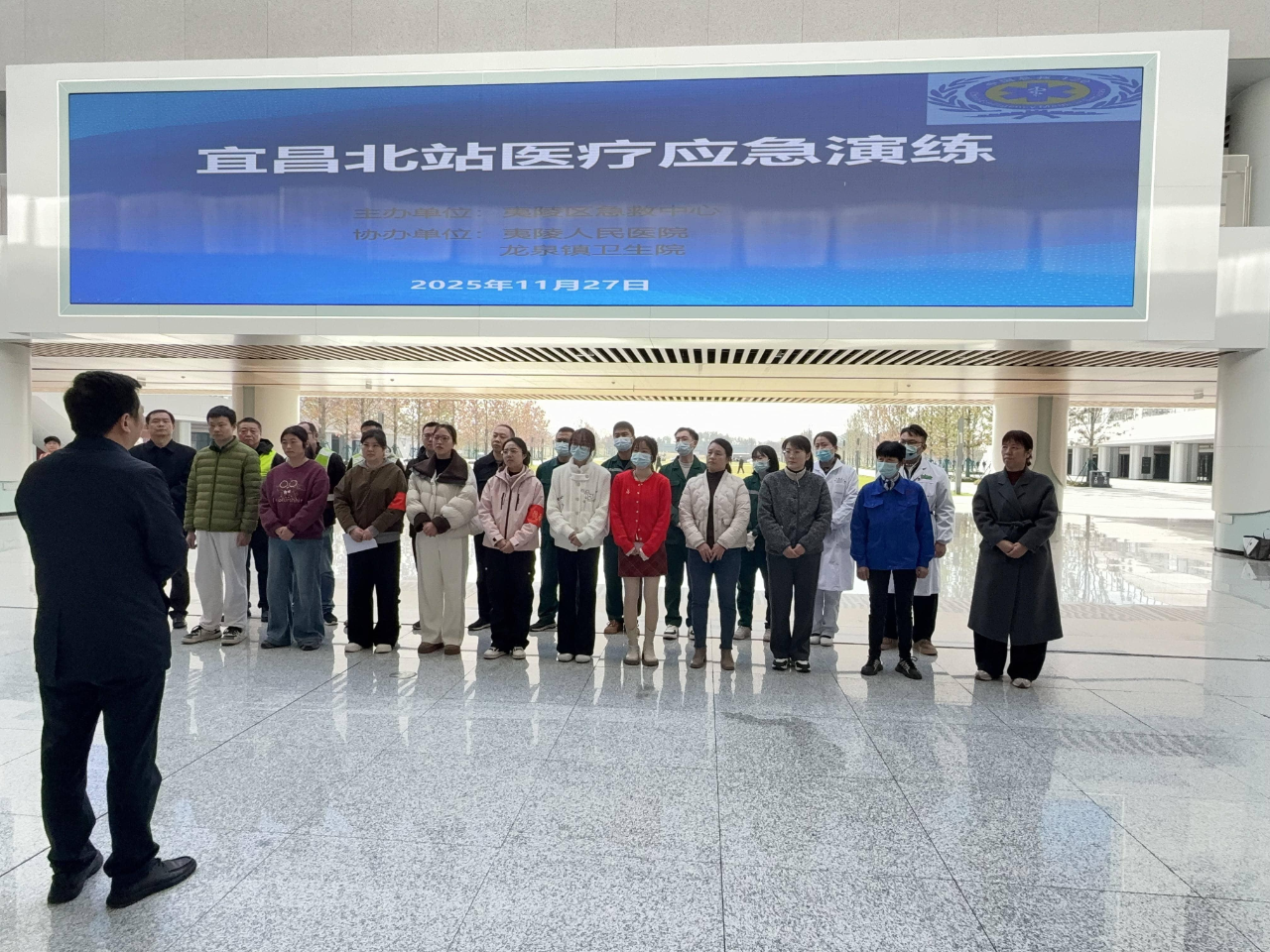 11月27日上午,一场模拟真实场景的医疗突发事件应急演练在宜昌北站成功举行。本次演练由夷陵区卫生健康局牵头,夷陵区急救中心指导,夷陵人民医院、龙泉镇卫生院参与,北站工作人员现场观摩学习。