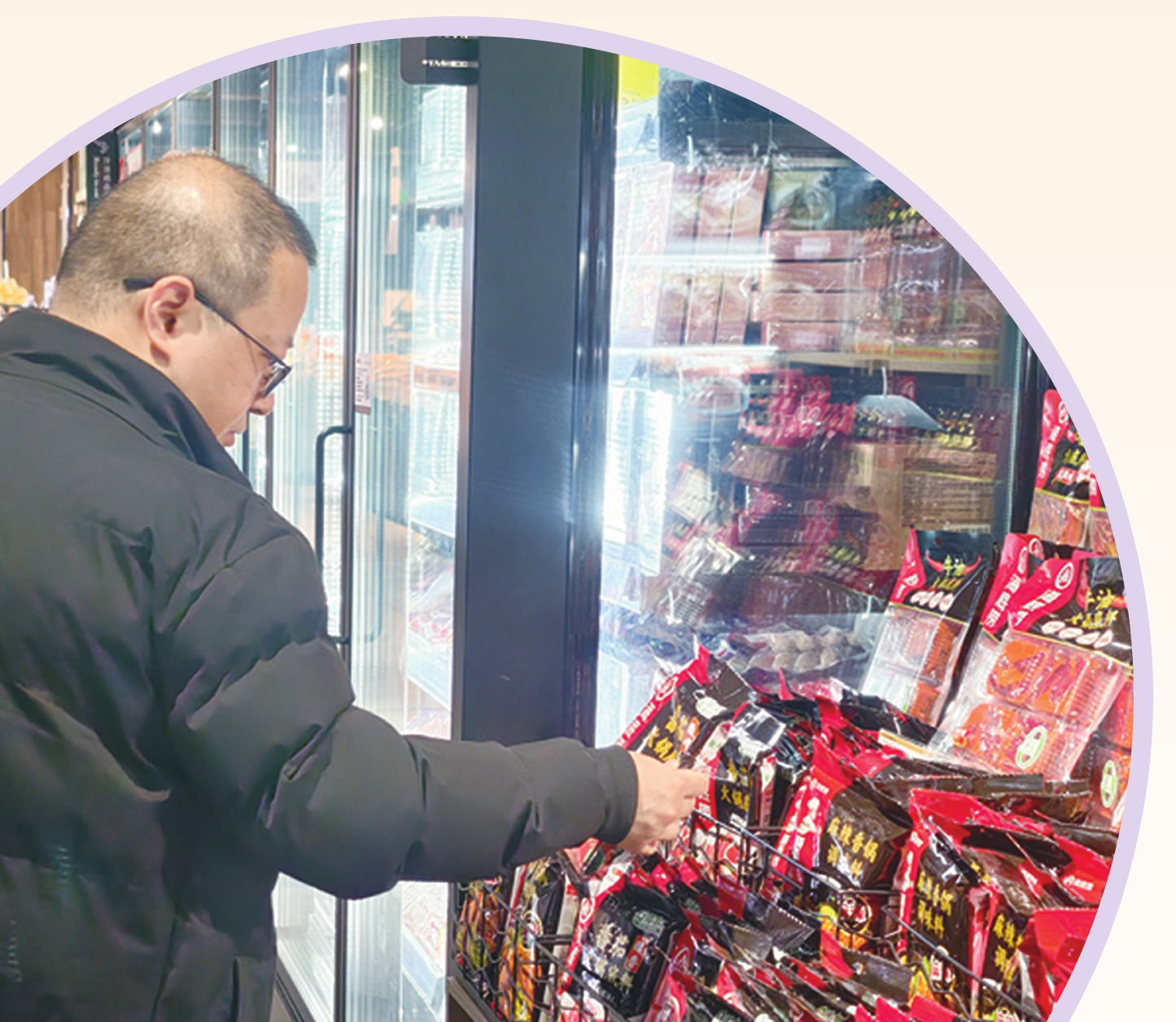 城区一超市内,市民正在选购火锅底料。(记者杨春艳 摄)