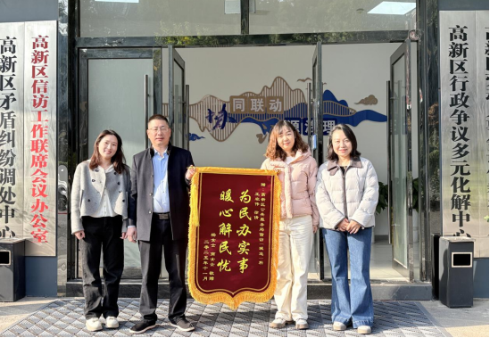 12月1日,市民杨女士、商女士将一面写有“为民办实事暖心解民忧”的锦旗送至宜昌高新区公共服务局信访(城运)科,以此感谢工作人员在矛盾纠纷化解工作中的高效协调和暖心服务。这面锦旗,正是高新区12345热线践行“接诉即办、为民服务”宗旨的生动缩影。