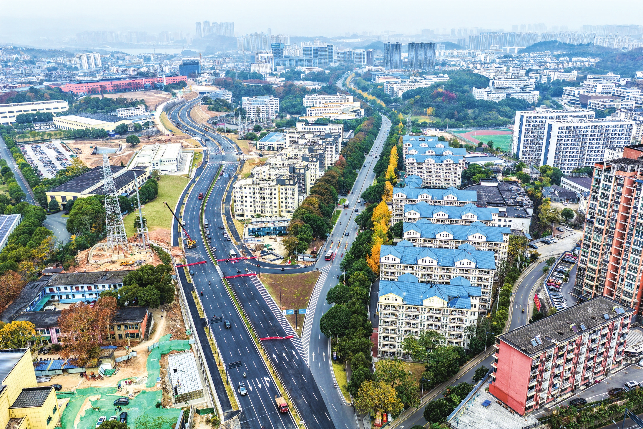 位于西陵区的大学路及西陵变电站出线通道项目最后一个子项——新建大学路工程具备通车条件。图为记者11月30日航拍的新建大学路全景。