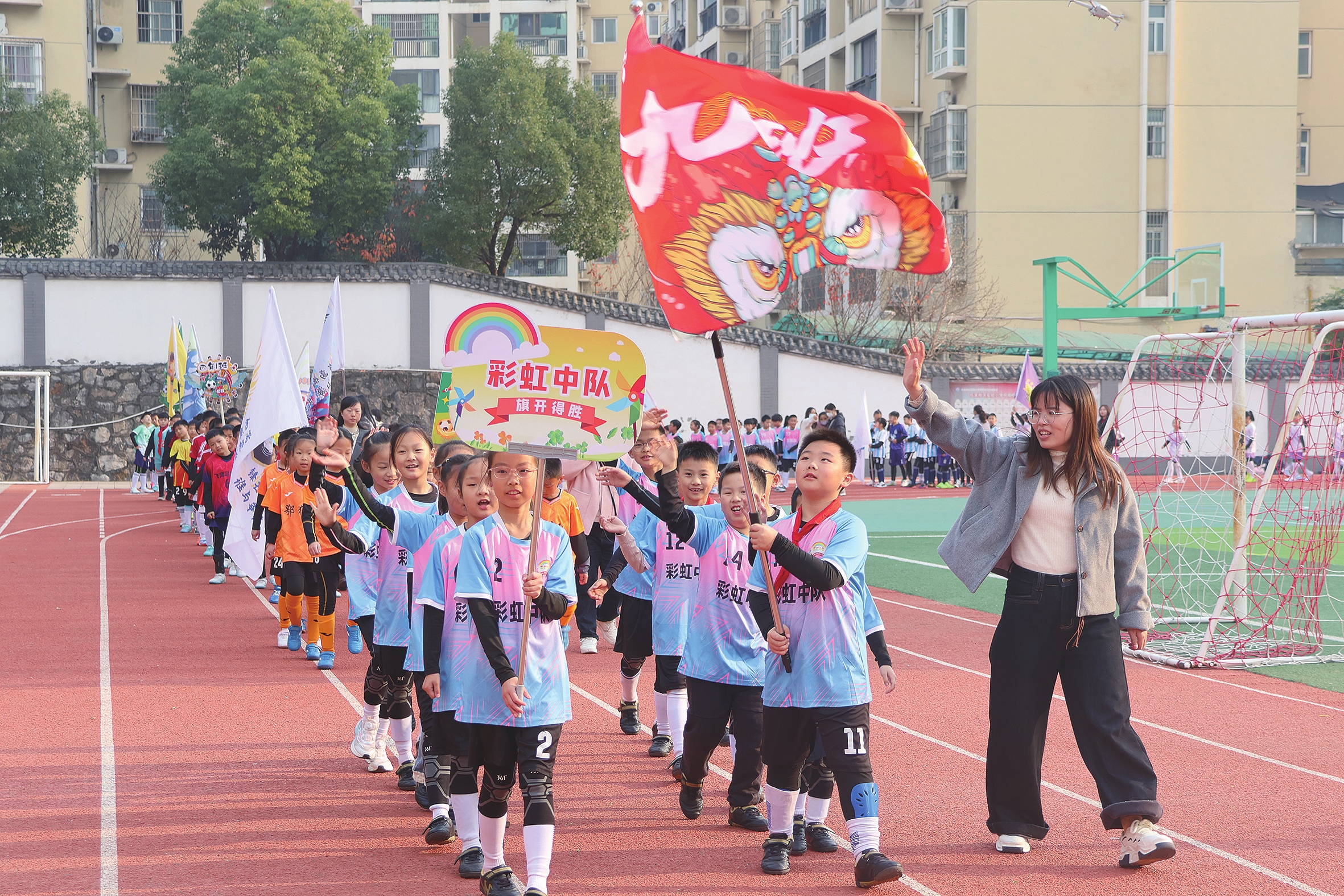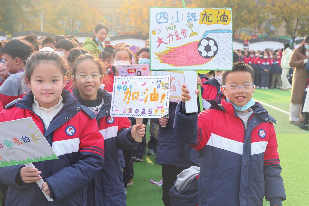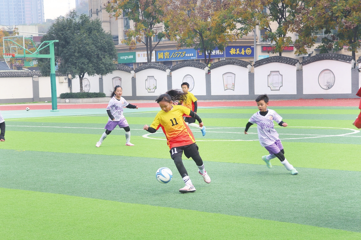 12月2日上午,伍家岗区实验小学中南校区第四届球类嘉年华开幕。在为期4天的活动中,全校学生将按年级分组,在足球、篮球、排球三大球类赛事中展开角逐。足球场上,小球员们带球突破、奋力拼抢,每一次精准的传球与精彩的射门都引来阵阵欢呼;赛场边,啦啦队的加油声、助威声此起彼伏,整个校园洋溢着阳光体育的蓬勃生机。(通讯员邓琳 摄)