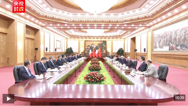 12月4日上午,国家主席习近平在北京人民大会堂同来华进行国事访问的法国总统马克龙举行会谈。