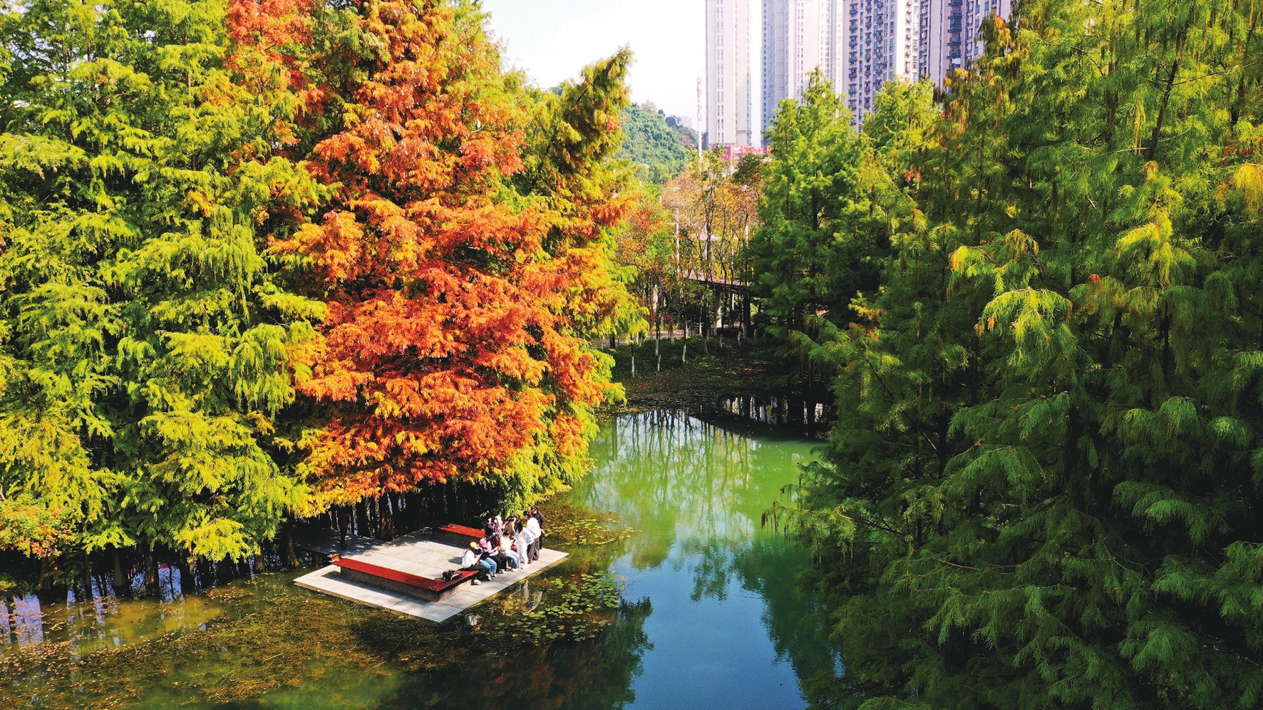 12月11日,冬日里的宜昌运河公园格外美丽,一处一景,犹如一幅幅油画作品,游人行走其间,悠然惬意。(记者吴延陵 摄)