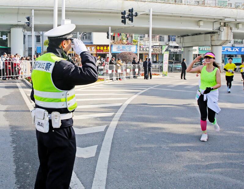 开跑之前,来自湖北理工学院的志愿者卢红霞跟其他志愿者一道,在起跑点手拉手筑起一道安全“防护墙”。“今年我们有了一个可爱的昵称‘小石榴’,我们要像石榴一样绽放精彩,让参赛人员感受到贴心的志愿服务。”已连续3年参与“黄马”志愿服务的卢红霞说。