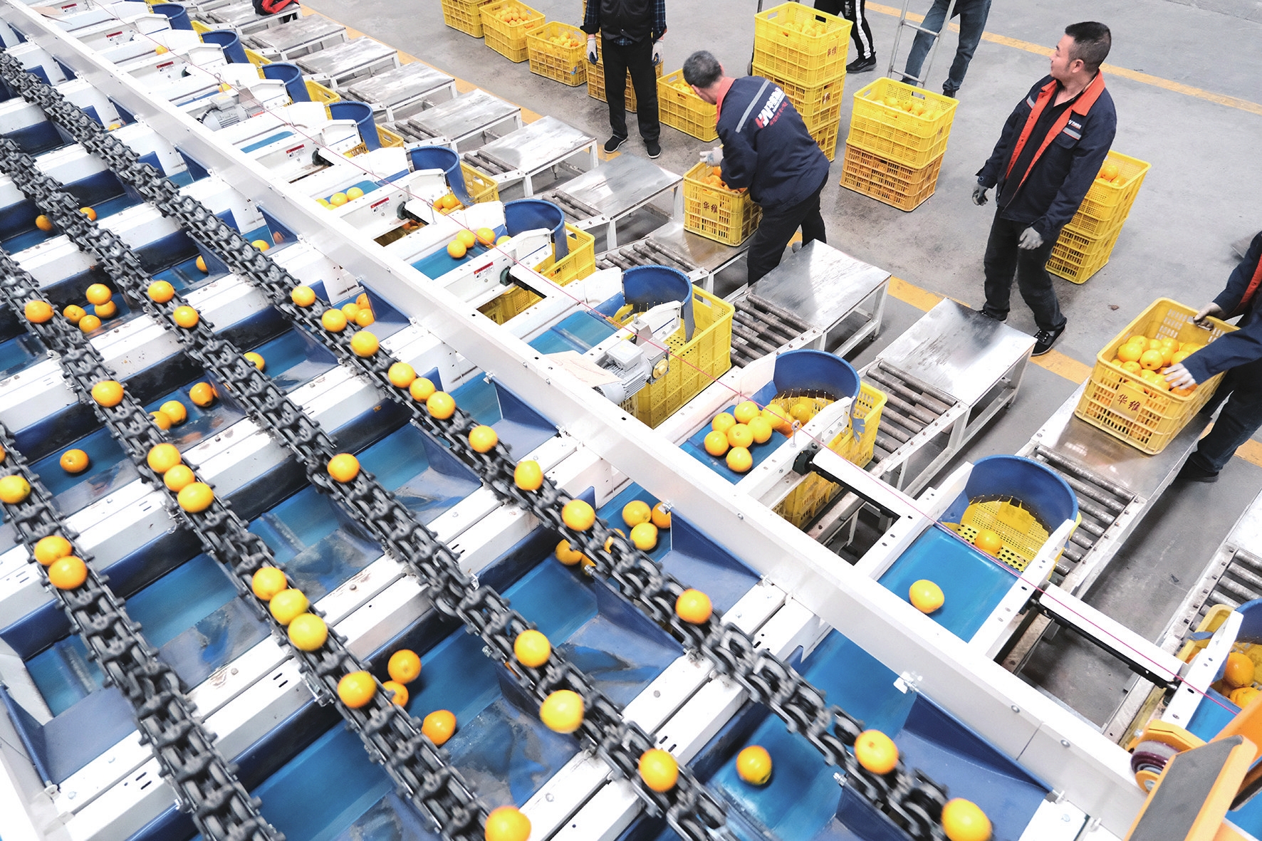 12月17日,秭归脐橙进入销售旺季。在华维电商物流园,一颗颗鲜橙经过自动分拣包装后,不仅销往全国各地,还将出口到迪拜、阿联酋等中东地区以及越南、新加坡、马来西亚等东南亚国家。目前,该物流园日发货量达3万件以上。(记者赵璟一、通讯员杨柳 摄)