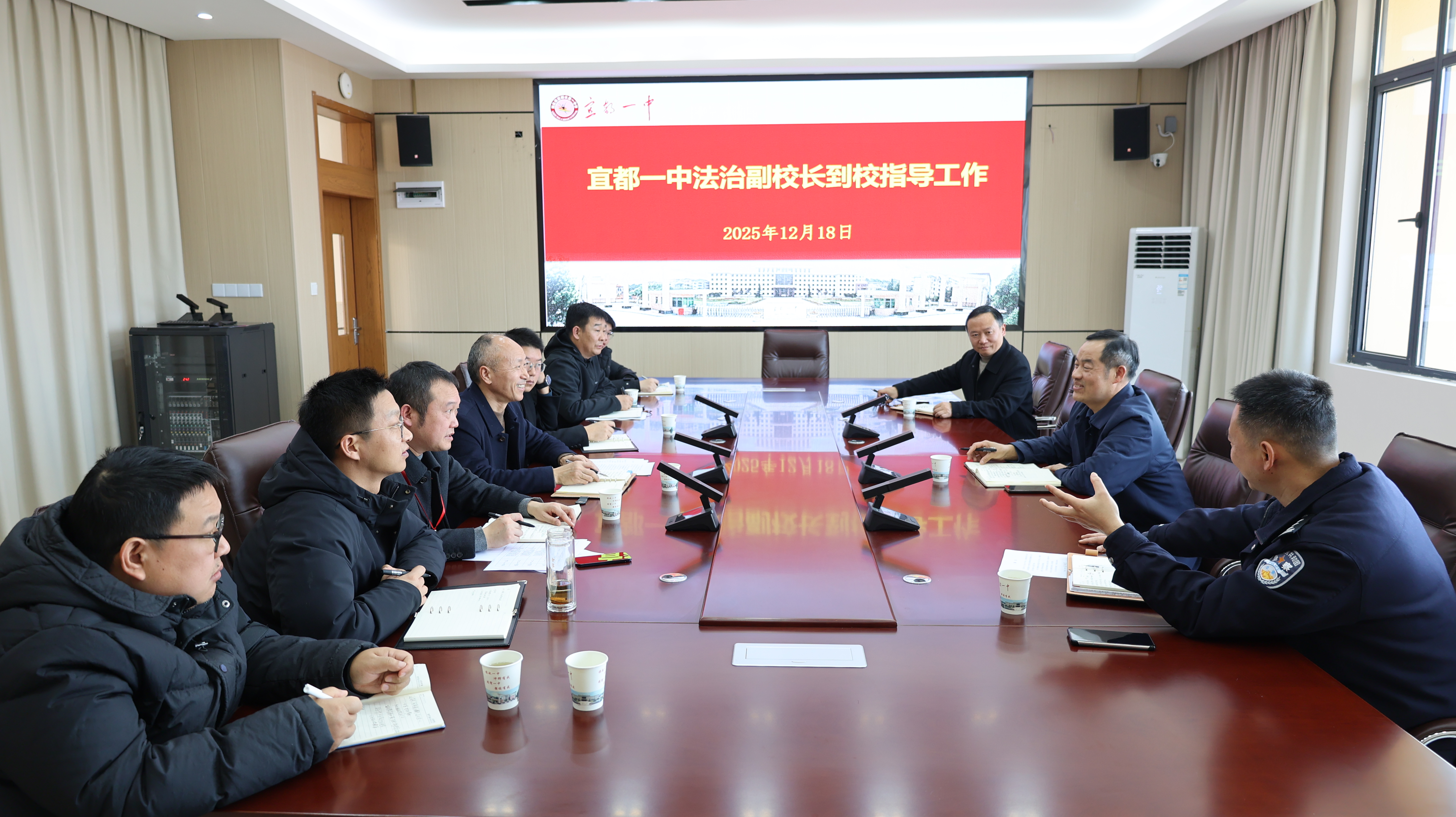 12月18日,宜都市委常委、政法委书记、宜都一中法治副校长李青松到校调研指导法治校园与平安校园建设工作。