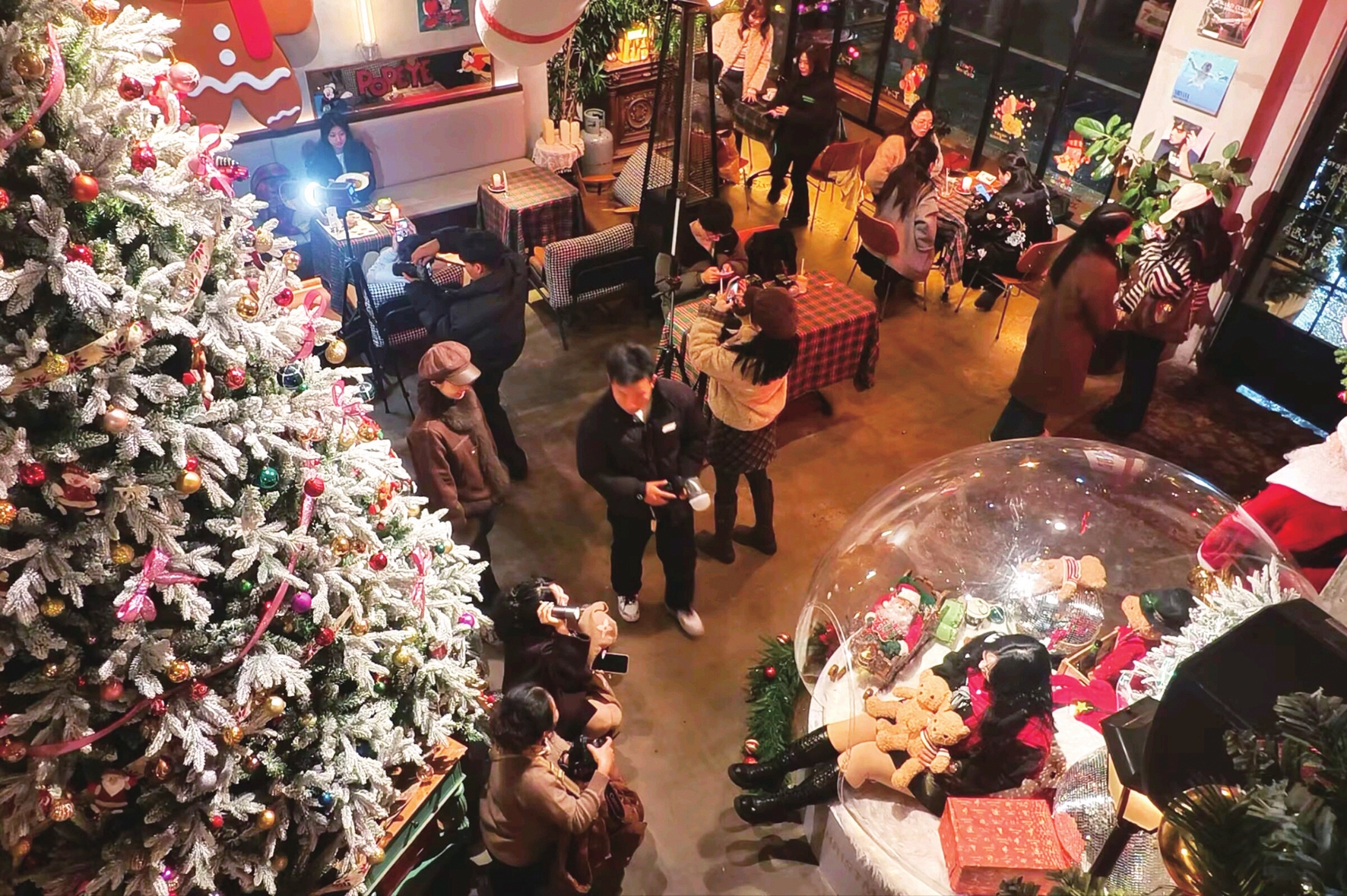 12月22日,沿江大道长江瑞景花迹咖啡店布局别致,青年男女齐聚,品美食拍靓照,共享欢乐时光。 (记者吴延陵 摄)