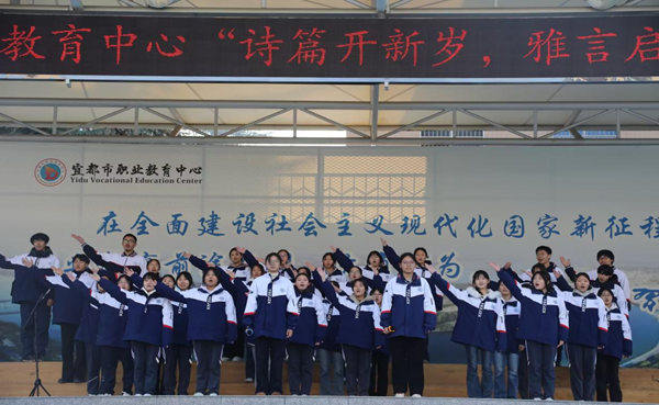 12月17日,宜都市职业教育中心举行“诗润青春志 雅言启新程”新春诗会,高一、高二分为两个会场同步举行。活动由语文教研组牵头策划,教务处统筹协调,高一、高二年级备课组协同组织。学校语文教师及全体学生共同参与,以诗诵传承文化,以声音传递情怀。