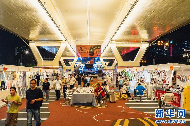 今年以来,武汉长江二桥汉口岸的黄浦大街立交桥下,人气持续攀升,成为新晋城市打卡地。步入桥下,明快的色彩划分出不同功能区,工业风的水泥桥柱与霓虹灯饰相映成趣。印有“江城”“武汉”字样的墙面前,不少市民游客驻足留影。