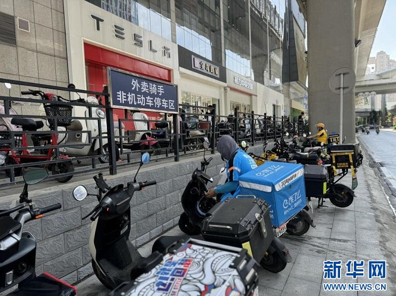 图为2025年9月4日拍摄的墨水湖北路高架桥下的外卖骑手非机动车停车区。(武汉市城管委供图)