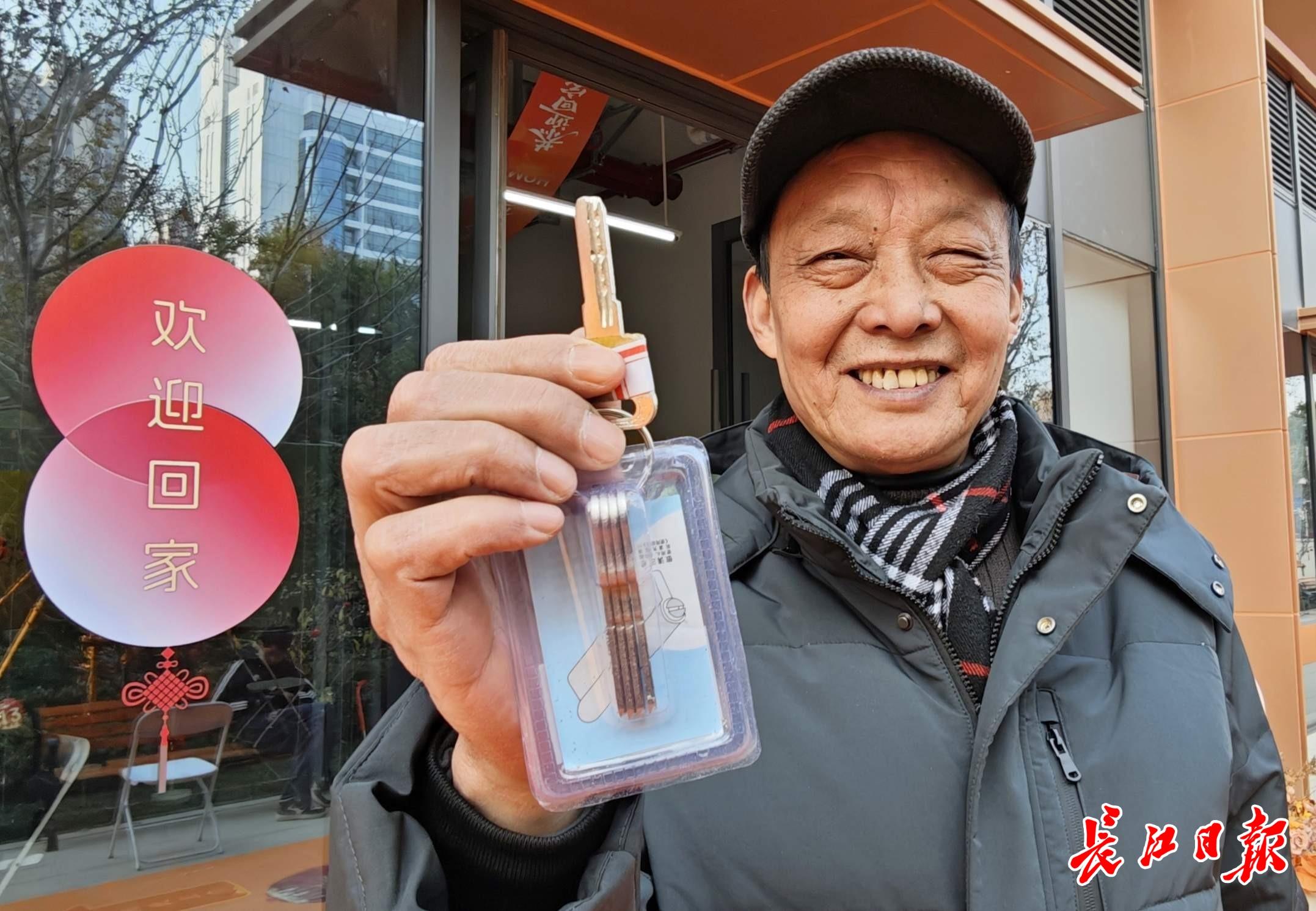 喜提新房钥匙的居民韩国斌开心不已。记者何晓刚 摄