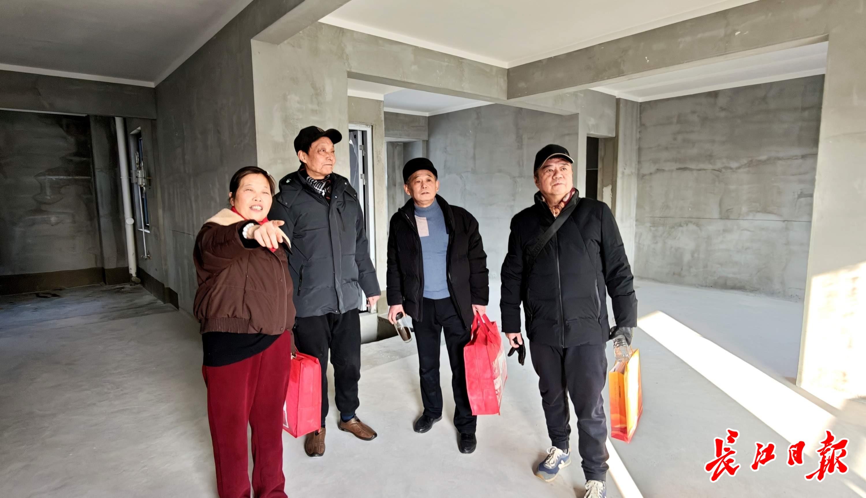缪伟(右一)参观老街坊的新房。记者何晓刚 摄