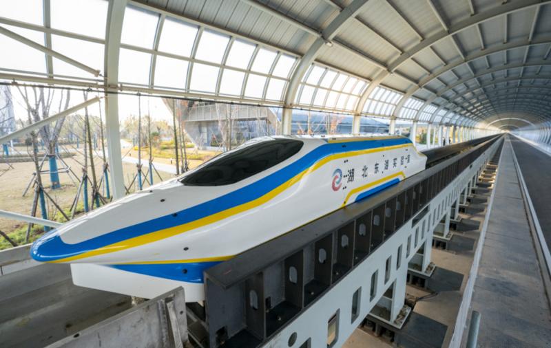 供湖北东湖实验室“一公里高速磁悬浮测试线”上,科研人员将一台1110公斤重的高铁模型车加速至时速800公里,并安全刹停,再次完成世界级创新。(魏铼|摄)