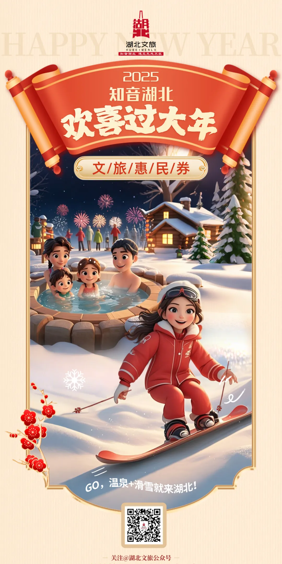 新年伊始,湖北发放总价值1亿元600万张的“知音湖北·2025欢喜过大年”文旅惠民券,并推出“知音湖北·欢喜过大年”系列主题活动,2025年12月25日,湖北再次面向全国游客发放2400万文旅惠民券。