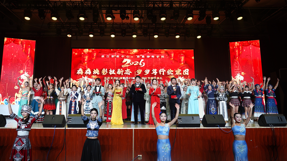 12月26日晚,枝江职教中心灯火璀璨、鼓乐铿锵,“骉骉焕彩担新志 岁岁笃行绘宏图”2026年元旦文艺汇演暨第27届匠心文化节颁奖典礼精彩上演。市教育局、经信局领导、合作企业、初中校长、家委会代表与全校师生2000余人欢聚一堂,共迎新年。