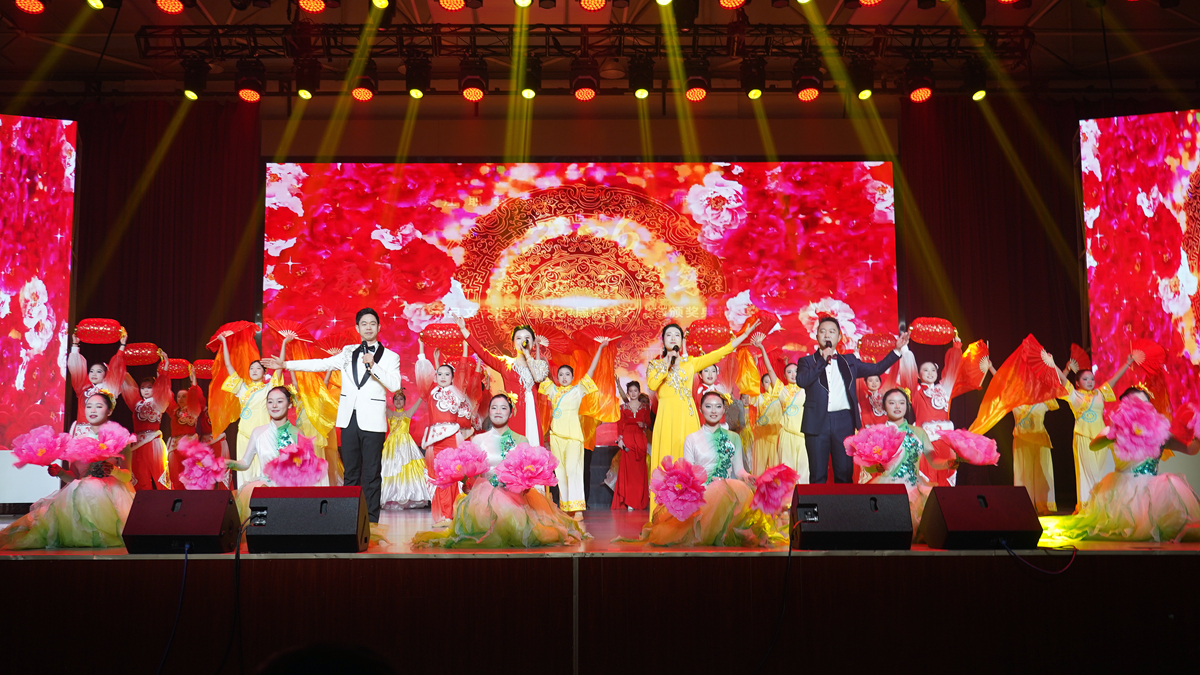 晚会在《春节序曲》的欢腾旋律中启幕。团舞《狂欢节》青春炸裂,青年教师《大中国》深情豪迈,运动秀《冲向未来》创意炫酷;爵士舞《超级冠军》尽显师者多面风采;诗朗诵《非遗里的华夏》把剪纸、皮影搬上舞台,让匠心在光影中“活”起来。压轴合唱《上春山》《美丽中国》将气氛推向高潮,掌声经久不息。