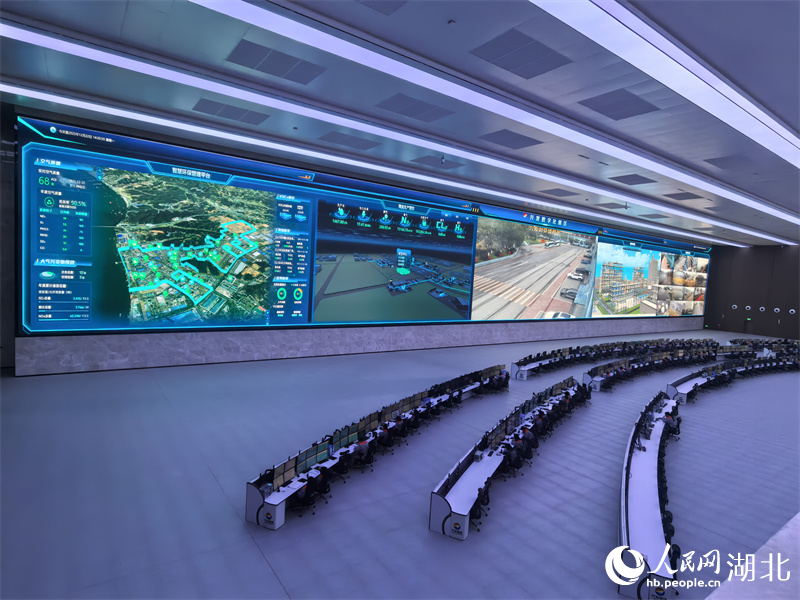 兴发集团新材料产业园智慧管理中心,大屏上各类数据实时跳动。人民网记者 周雯摄