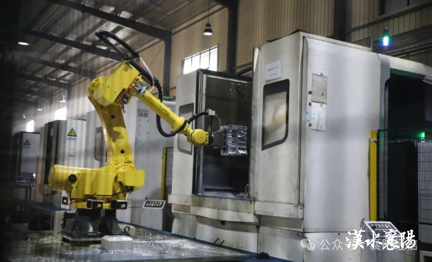▲长源东谷的智能化生产车间里,工业机器人有序运转