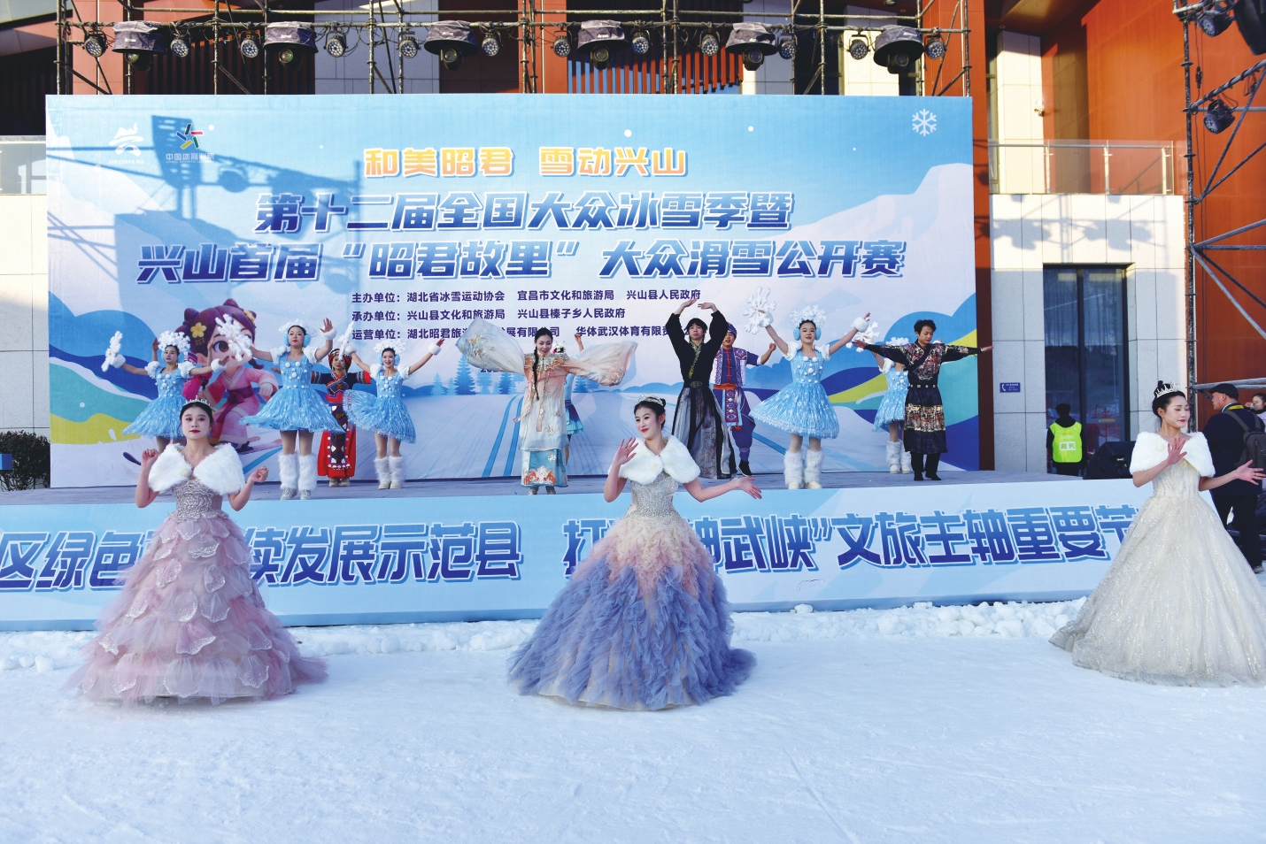 此次赛事以“和美昭君,雪动兴山”为主题,设了单板滑雪大回转、高山滑雪大回转及表演赛三大项目。赛场上,选手们踏雪飞驰,尽显速度与技巧;赛场外,六大特色展区同步开放,将昭君文化与冰雪运动深度融合,为赛事增添了浓郁的文化温度与烟火气息。