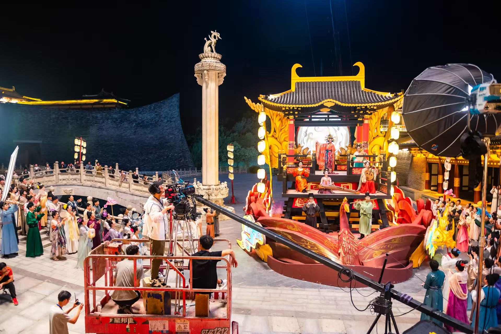 唐城景区作为核心拍摄地,凭借原汁原味的唐风建筑与完善配套,成为大影视制作剧集的首选。从《妖猫传》中恢弘大气的宫殿群,到《东京梦华录》里烟火气十足的市井街巷,再到《庆余年2》中极具质感的古建场景,唐城的场景适配性与还原度广受业内认可。“我们升级后的2000余件道具涵盖衣食住行,小到发簪、茶盏,大到马车、屏风,都是按历史原型复刻,不仅适配微短剧快节奏拍摄,也能满足大剧对细节的高要求。”唐城景区影视部经理黄雅璇指着道具库中一件精美的唐代铜镜介绍,目前,基地已经可以实现部分剧组拎包入住,直接拍摄,大大降低拍摄成本。”