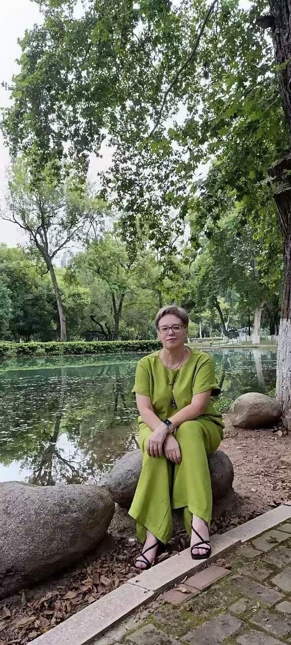 2025年8月6日下午叶莲娜在武汉解放公园留影。