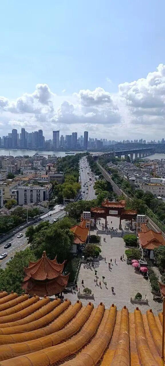 叶莲娜在黄鹤楼上拍摄的武汉城市景观。