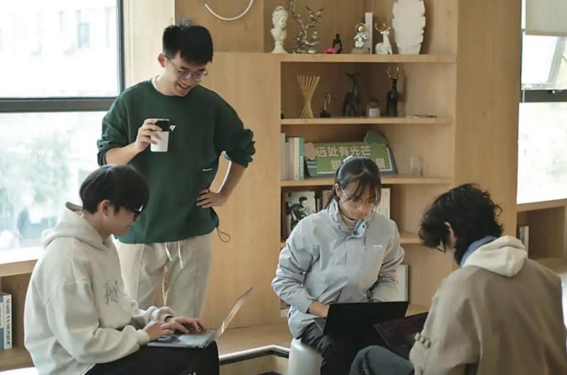 “猴子说话”团队平均年龄20岁出头,图为雷圳鹏(左二)和他的伙伴们(图|中国光谷)