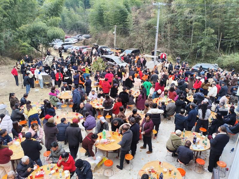 屋前空地、山坡缓处,甚至路边,都见缝插针地摆上了圆桌。老人们围坐唠嗑,年轻人举着手机记录这场面。几千人挤在这片山坳里,只为同一口刚刚出锅、烫嘴的乡野滋味。